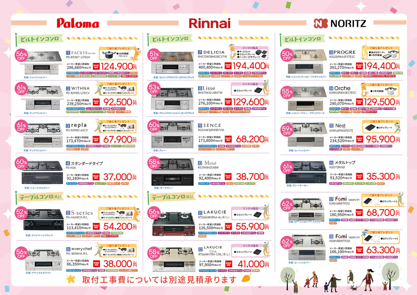 ガスコンロ・給湯器・衣類乾燥機など、 暮らしに役立つ人気商品を最大62%OFFの特別価格でご用意しております。